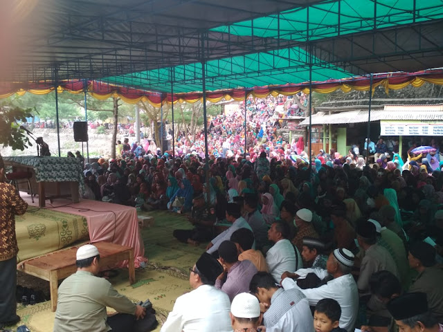 PANGGANG (Wartahandayani.com)_Ribuan jamaah memadati Lapangan Parkir Pantai Gesing Padukuhan Bolang RT 05 RW 02 Desa Girikarto,Kecamatan Panggang .Minggu pagi 02/02/2020 dalam rangka pengajian akbar yang dipimpin oleh Ustad Muhamad Abduh Tuasikal,M.Sc dan pembagian 2,5 kilogram beras kepada jamaah yang hadir